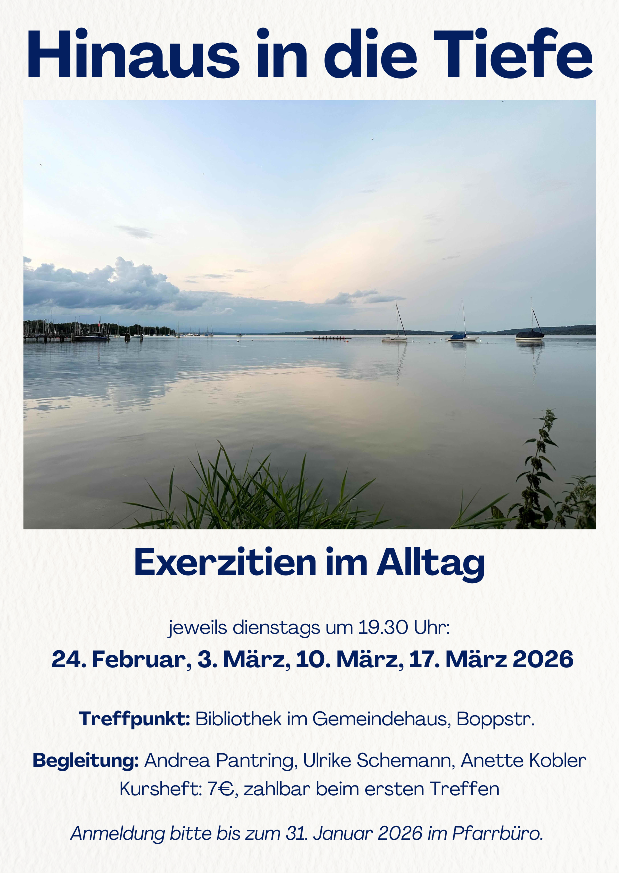 Die „Exerzitien im Alltag 2026“ tragen den Titel „Hinaus ins Tiefe“. Vier Wochen lang lassen wir uns anregen, das eigene Leben anders wahrzunehmen. „Fahre hinaus, wo es tief ist“. Dieses Wort von Jesus lädt uns persönlich ein: „Lass Tiefe zu. Gib deiner Sehnsucht Raum und geh einen inneren Weg.“